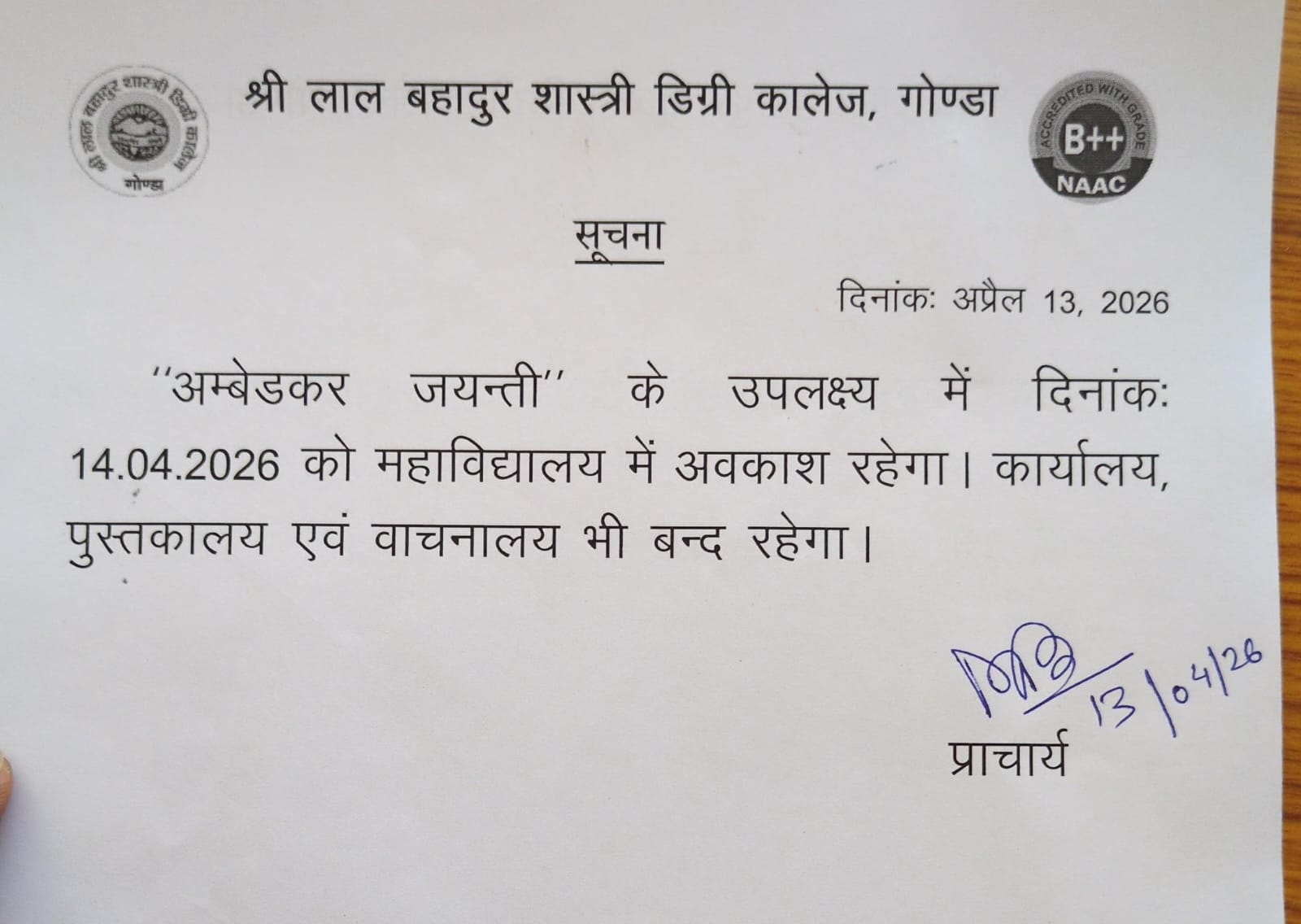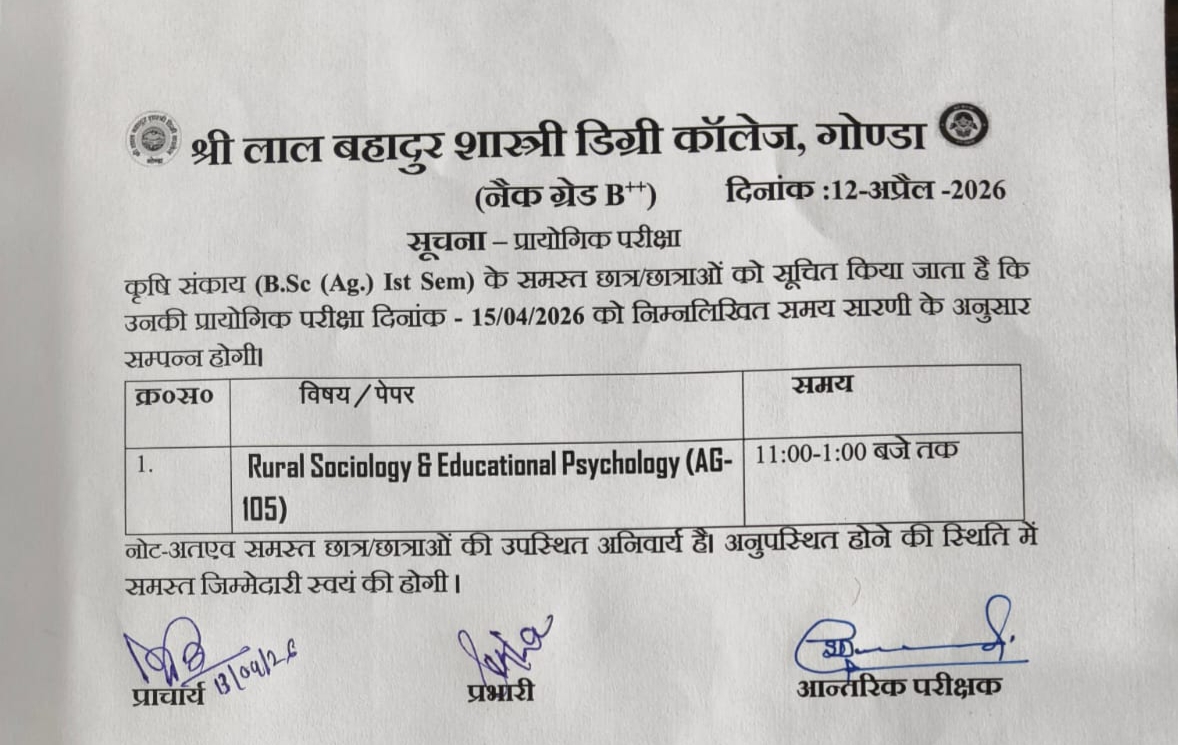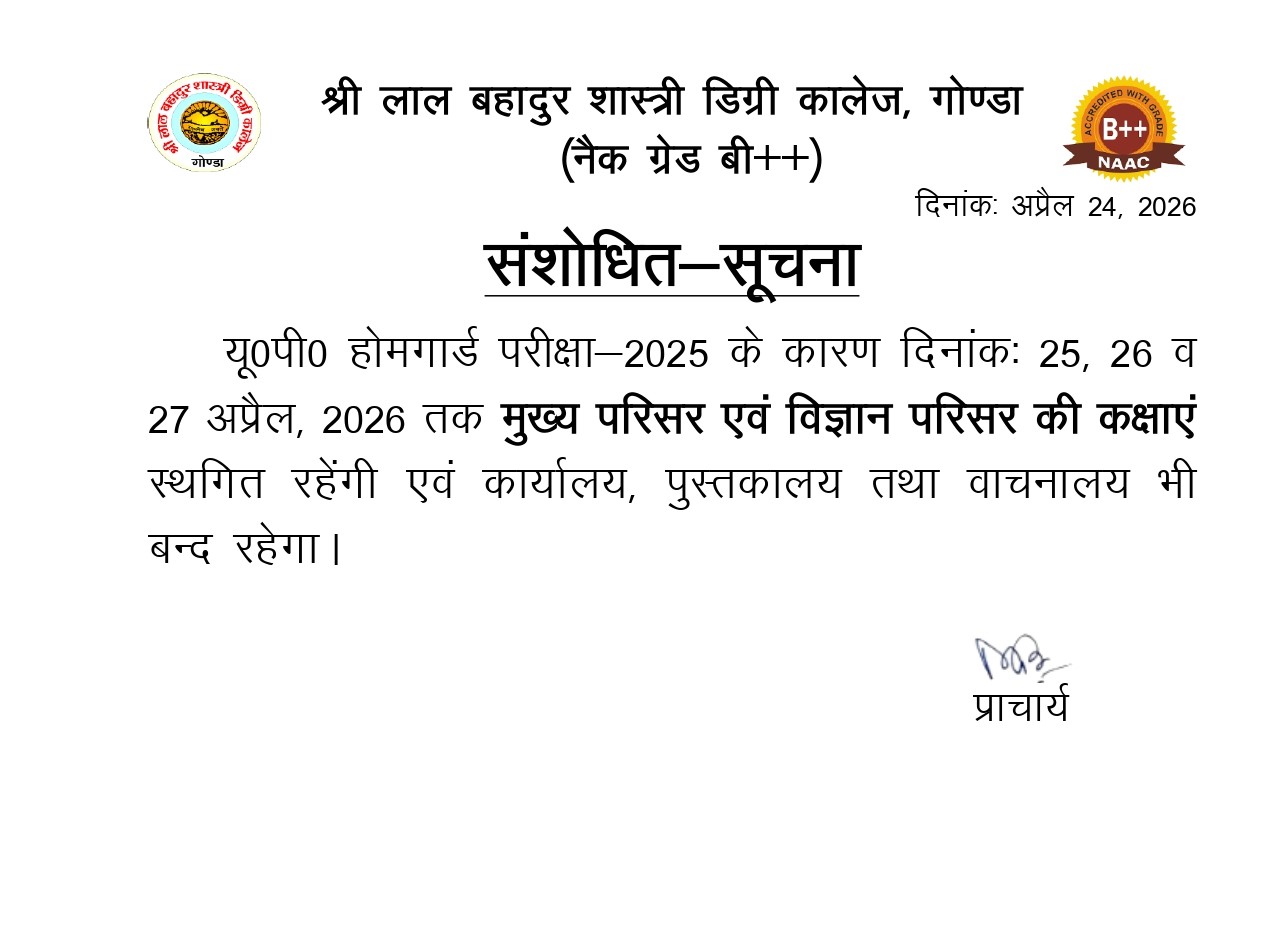 Welcome to Shri Lal Bahadur Shastri Degree College, Gonda.It is situated at the head quarter of Gonda district, established in the memory of late Prime Minister Shri Lal Bahadur Shastri. Sri Rajendra Nath, then district magistrate of Gonda took initiative to establish the college. The College was started with only graduate level of Arts faculty. Now the college has P.G. courses as well. The College has its own three campuses.