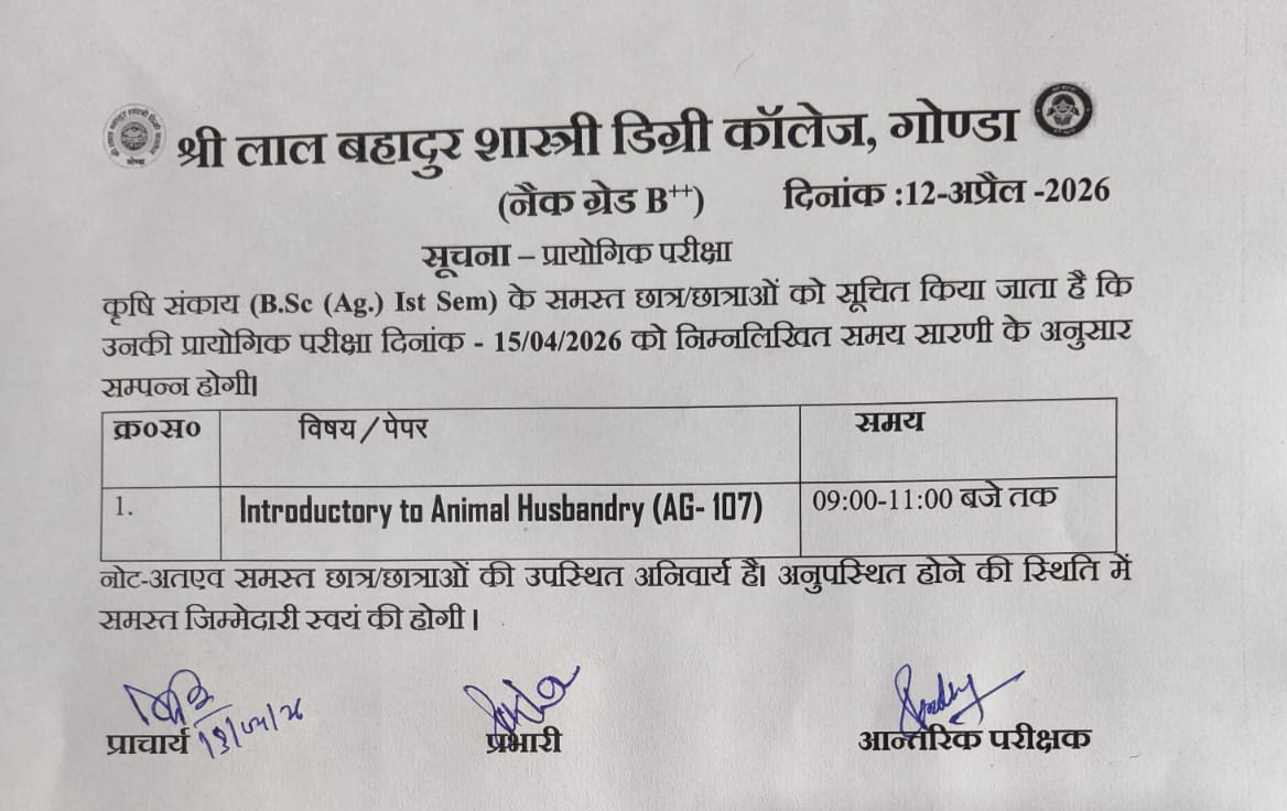 PRACTICAL EXAMINATION NOTICE FOR B. SC. AGRICULTURE III SEMESTER STUDENTS